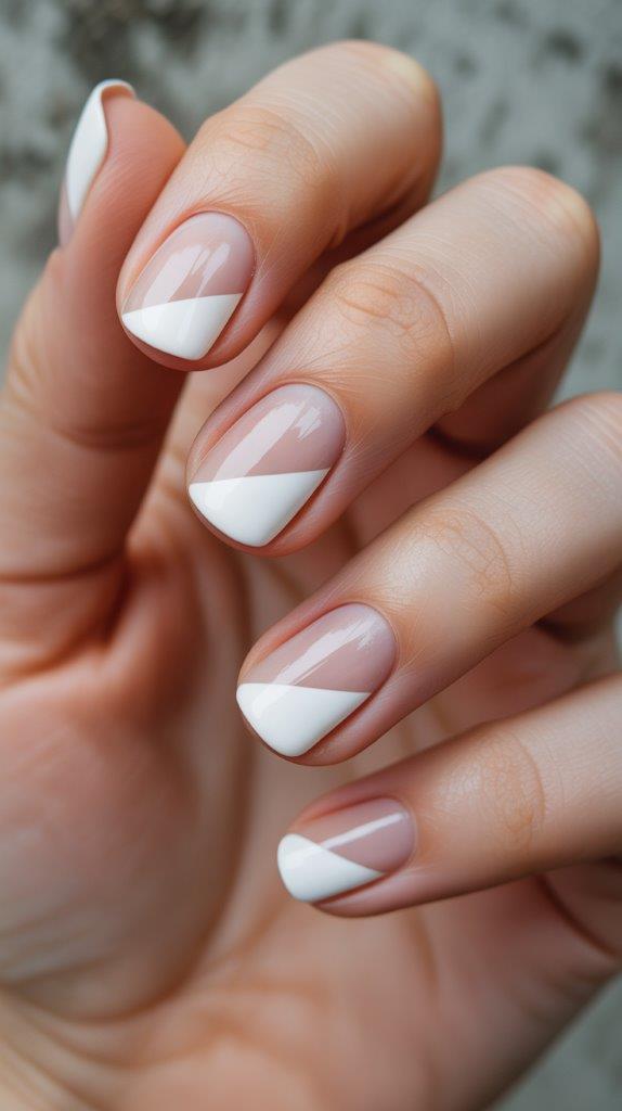 This one is so chic. Leave half of your nail bare (or with a clear coat) and paint the other half in a stark white or red. You can do a diagonal line or a straight-across split. It’s minimalist, modern, and seriously stylish.