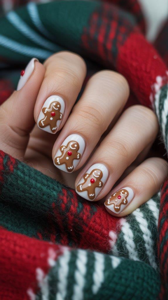 Paint a chocolatey brown gingerbread man on a white or red base and give him little red button eyes and a cute smile. You can even add tiny white polka dots for icing. It’s like having a whole cookie platter on your hands (but way less messy).