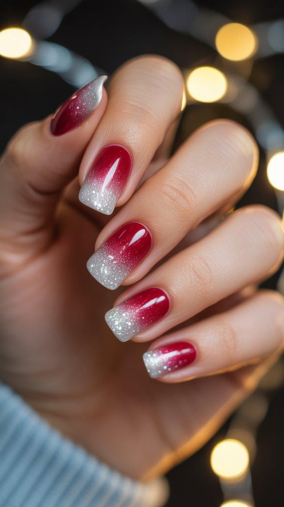 Start with a solid red base at your cuticles and fade it out into a glittering white tip. Or vice-versa! This ombre effect is stunning, especially when you use a fine, chunky glitter for the white part to mimic falling snow. It’s a total showstopper.