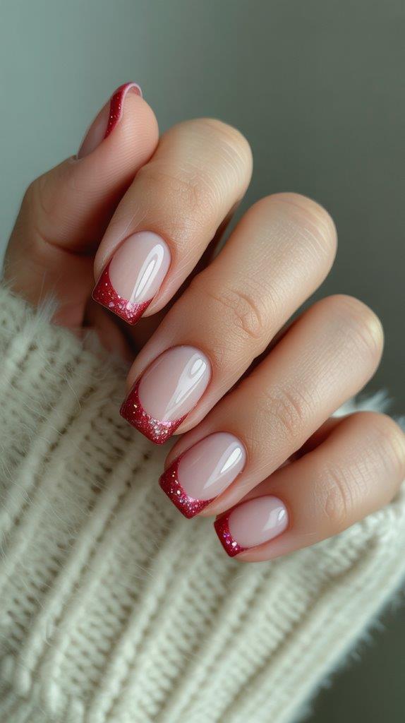Do a classic French tip, but with a red or white glitter polish. It’s a subtle way to add some sparkle that catches the light beautifully. It’s like your nails are constantly celebrating.