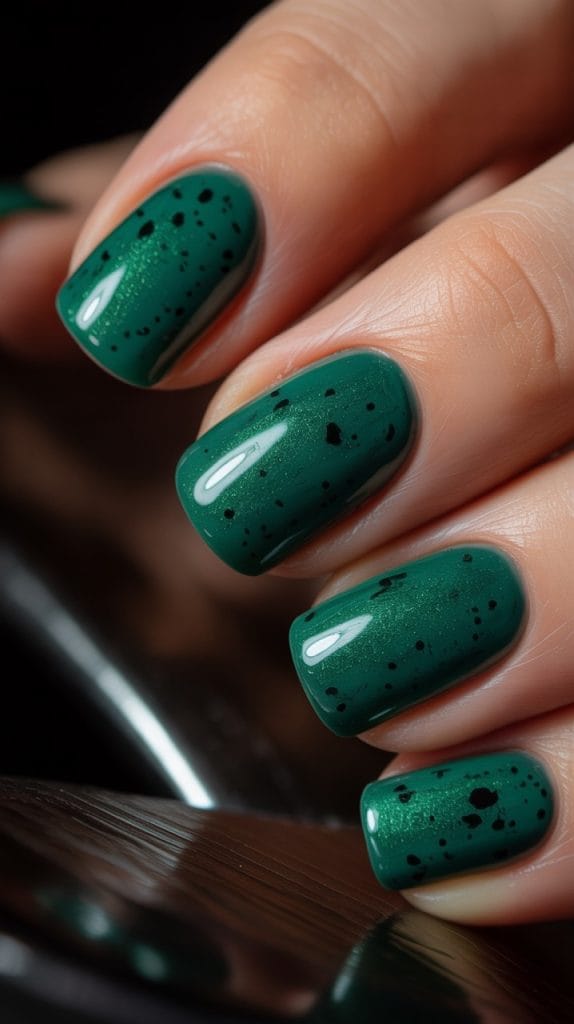 Double, double toil and trouble! Channel your inner witch with nails that look like they’ve been dipped in a magical brew. Use a dark, shimmering green polish and add some black speckles to mimic the effect of a bubbling cauldron. This look is both enchanting and eerie, perfect for casting spells all night long.