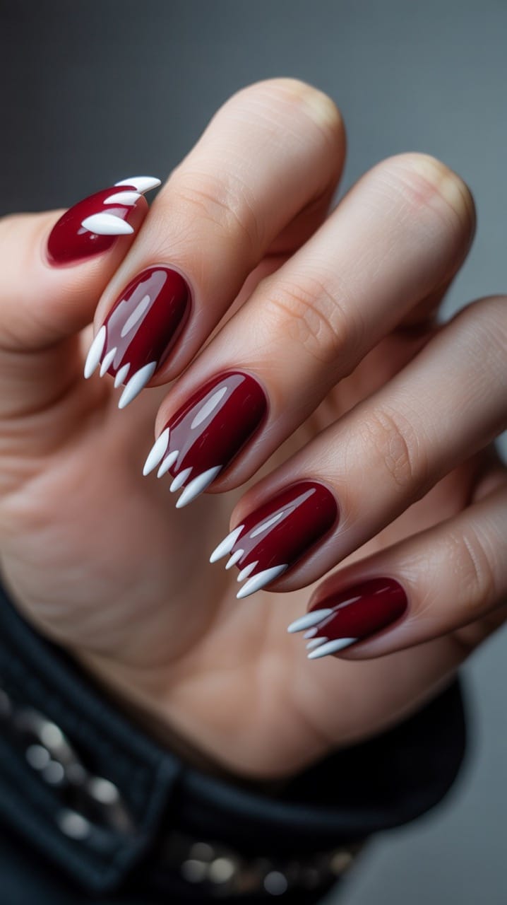 Sink your teeth into this fang-tastic nail design. Use a deep red or black base and add white fang designs or a splash of red glitter to mimic blood. This look is perfect for adding a bit of gothic glam to your Halloween attire.