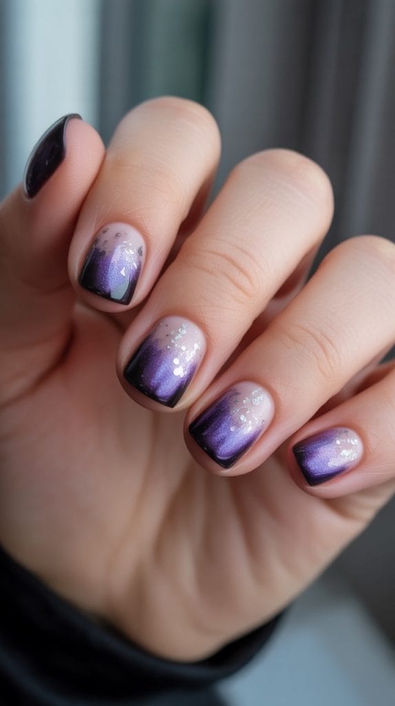 Create an enchanting ombre effect with black fading into deep purple or green. This gradient look is subtle yet stunning, perfect for those who want a more sophisticated Halloween design. Add a touch of silver glitter for a starry night effect.