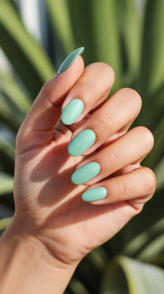 Cool mint green on short almond nails creates that perfect spring vibe. The slight point of almond shape elevates mint from casual to chic. Mint is cheerful without being loud—perfect for short nails.