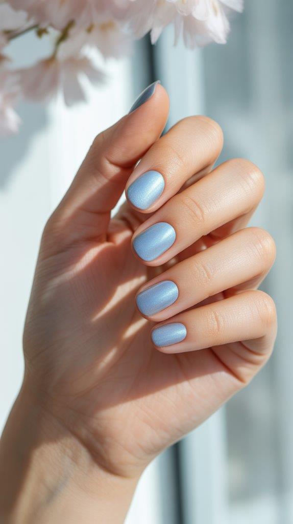 Soft sky blue on short rounded nails evokes those perfect spring days. The rounded shape is practical and flattering, while the blue adds personality. This is my go-to when I want color that still feels neutral.