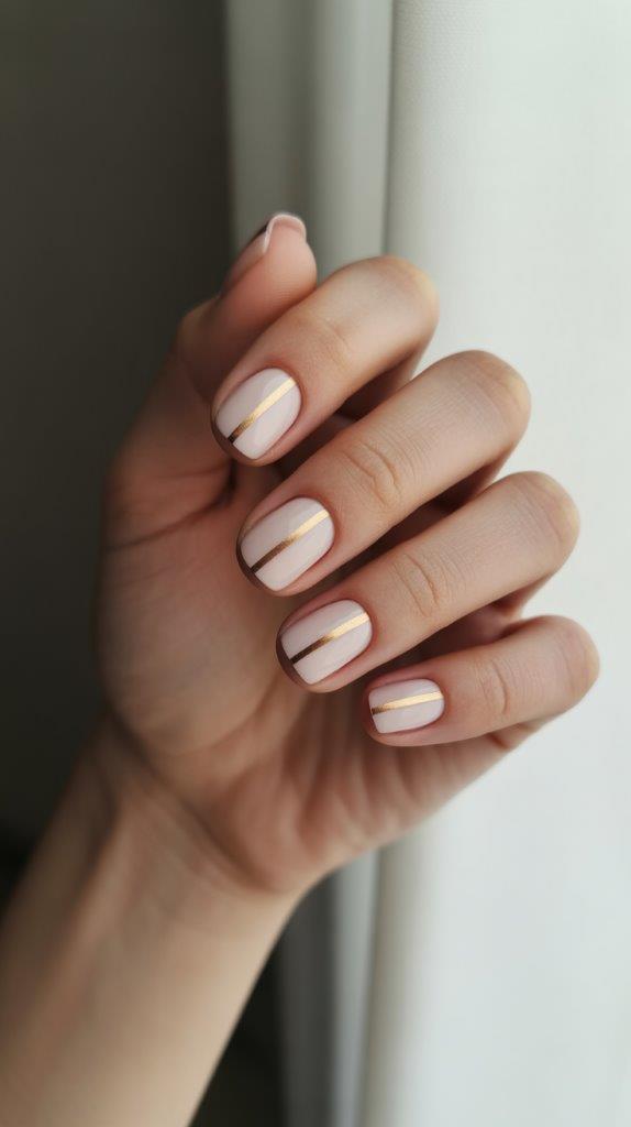 Any spring base color with one thin metallic stripe down the center. The vertical line actually elongates short nails visually. It’s minimal, it’s chic, and it’s surprisingly impactful.