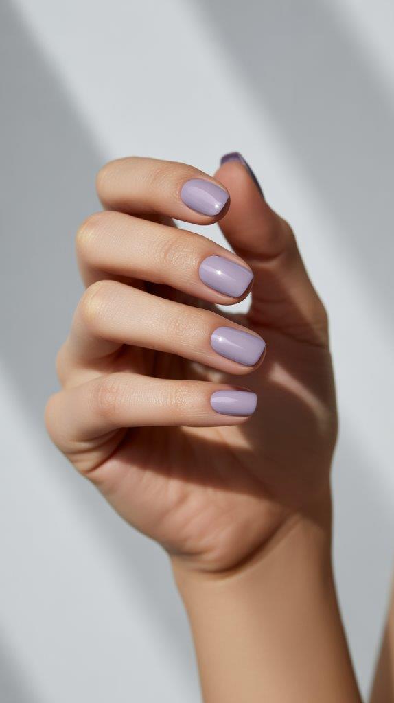 Pale lavender on short square nails is fresh and modern. The geometric shape gives soft lavender some edge, preventing it from being too romantic. This combination is surprisingly sophisticated and very spring 2026.