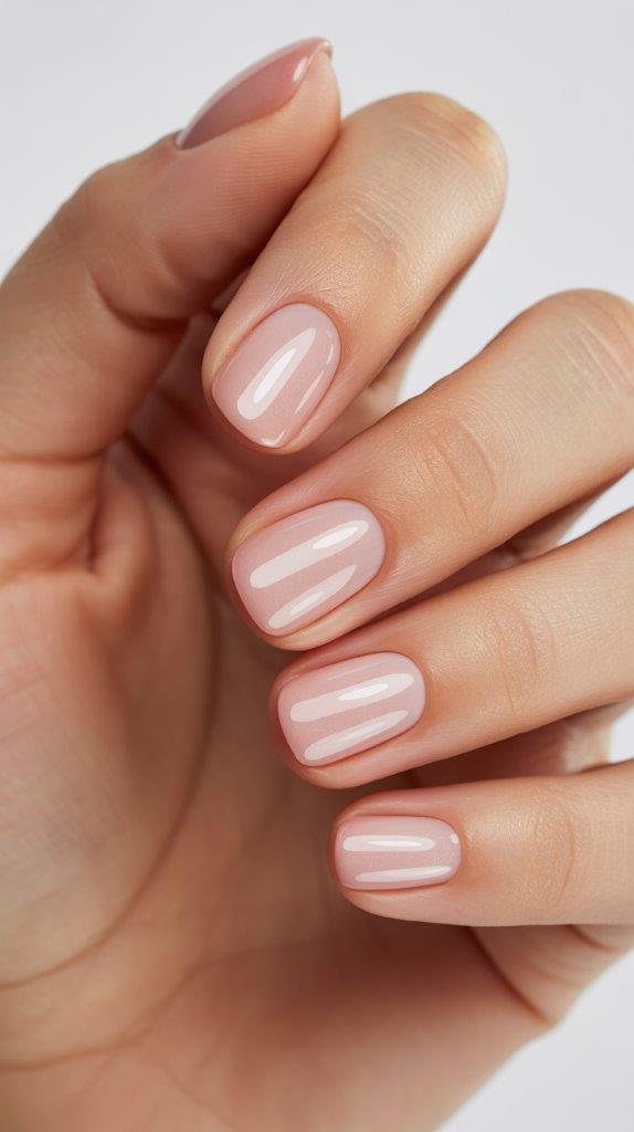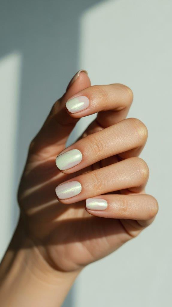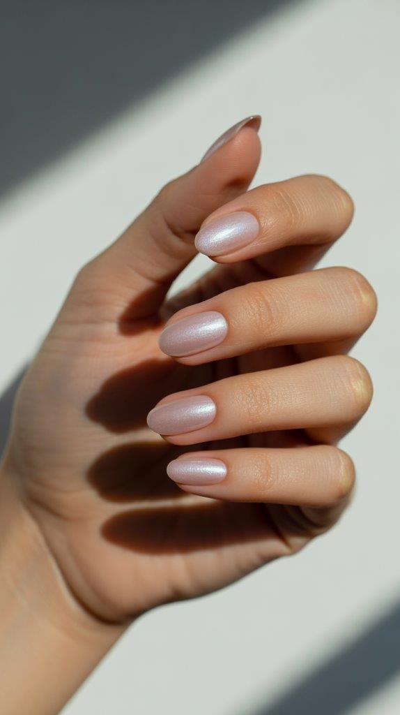 Soft pastels with subtle pearl or iridescent shimmer add dimension. The shimmer catches light without being glittery—perfect for short nails where you want interest without overwhelming the space. Pearl finishes are elegant and unique.