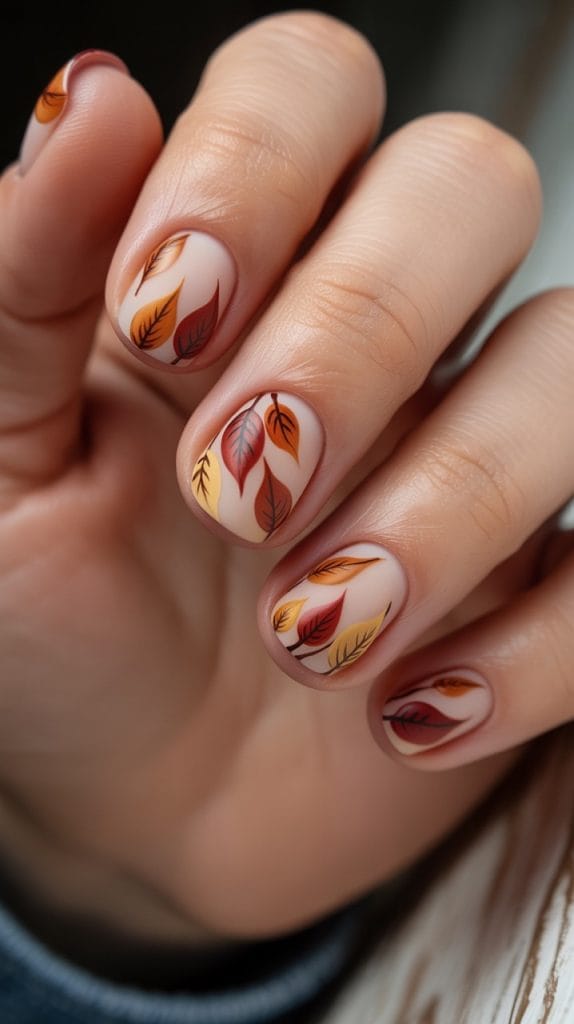 Maple leaves are a quintessential symbol of fall. Incorporate them into your nail design with hand-painted or decal versions. Choose warm hues like red, orange, and yellow to capture their natural beauty.