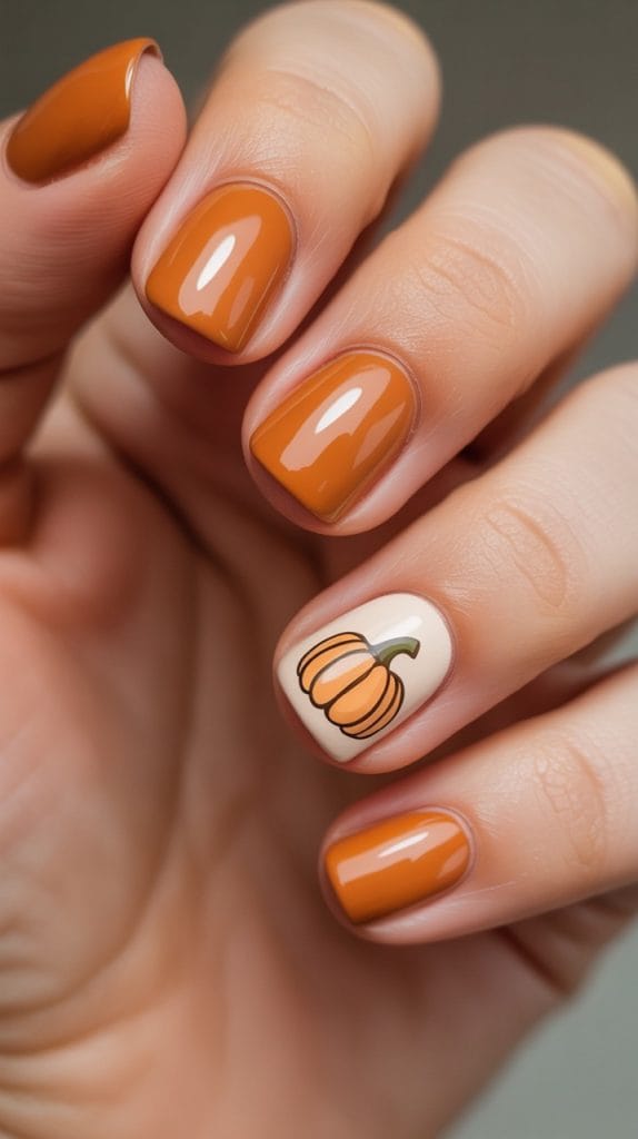 Embrace the pumpkin spice craze with nails that showcase this seasonal favorite. A combination of burnt orange and creamy white creates a cozy and trendy look. Add small pumpkin decals or hand-painted details for an extra festive flair.