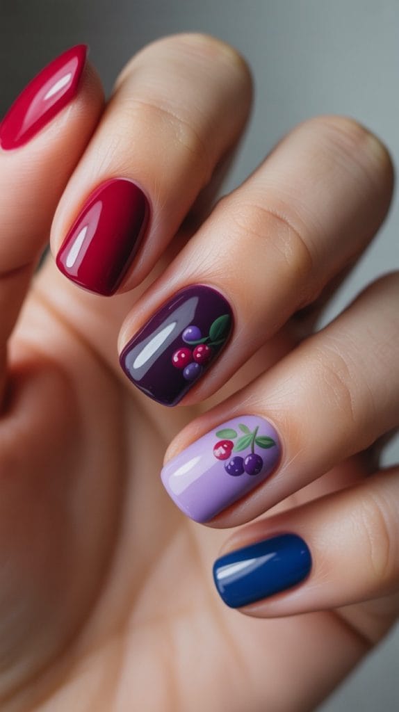Celebrate the bounty of the season with a design inspired by berries. Use shades of red, purple, and blue to create a vibrant, luscious look. Add small berry decals or hand-painted details for a playful touch.