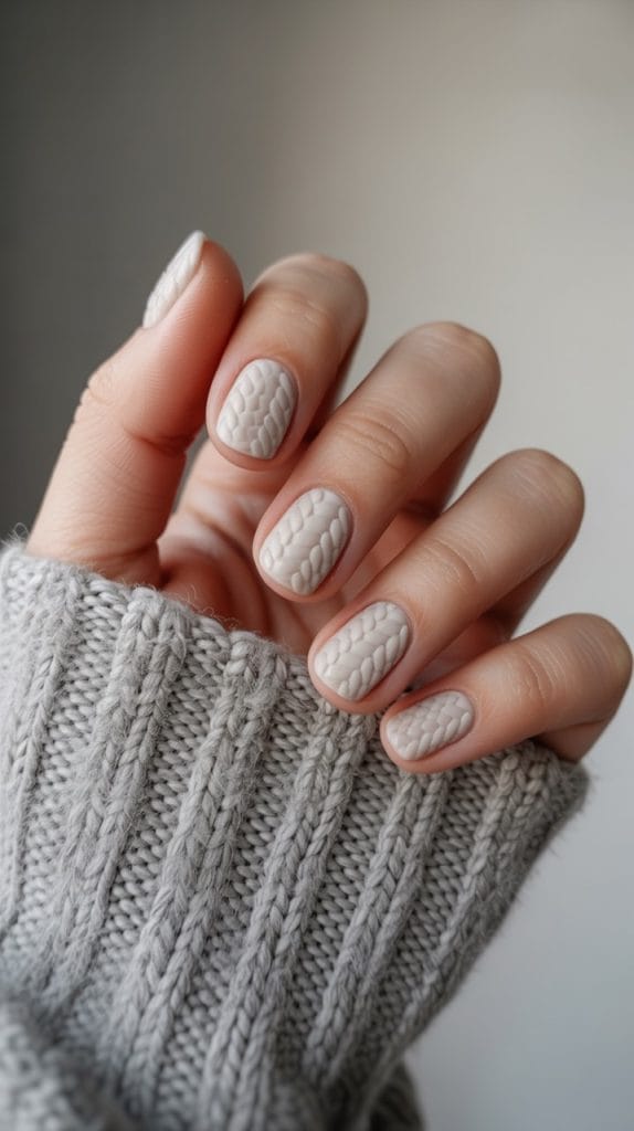 Bring the comfort of a cozy sweater to your nails with textured designs. Use cable knit or other sweater-like patterns to add warmth and dimension. Opt for soft, neutral colors for a timeless look.