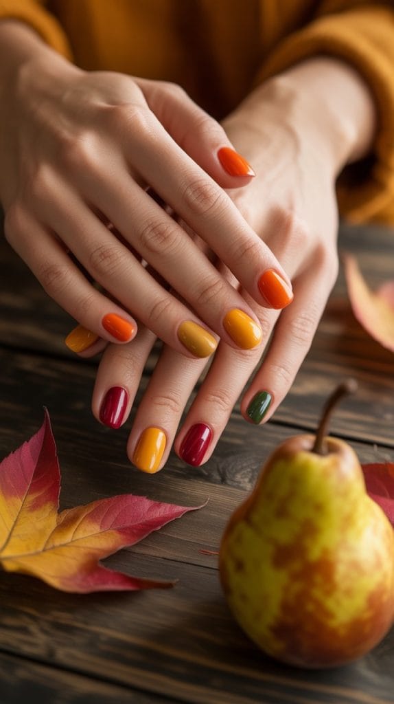 Celebrate the cornucopia of colors that define Thanksgiving with a vibrant, multi-colored nail design. Incorporate shades like orange, green, yellow, and red to create a lively and festive look.