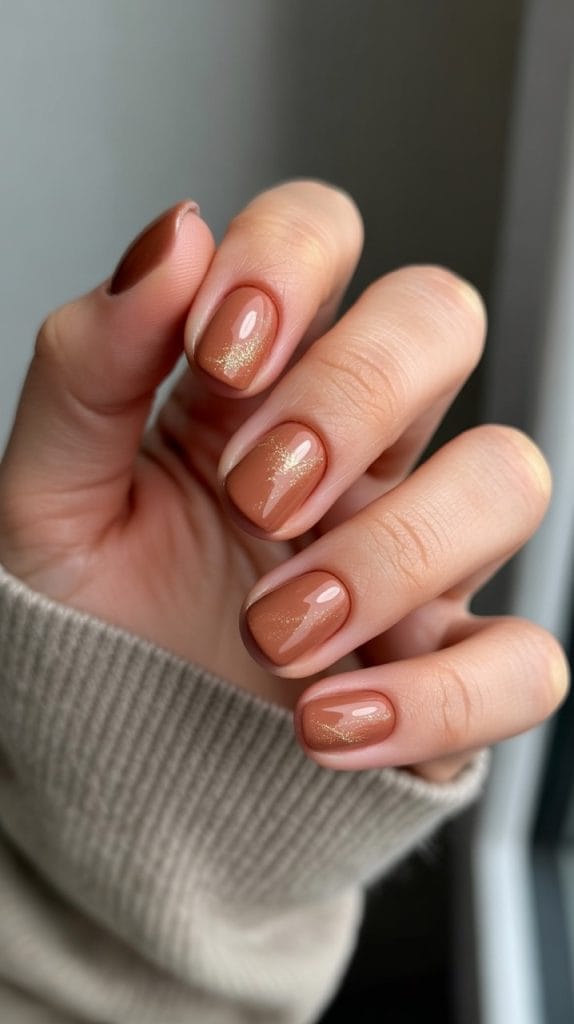 Embrace the warmth of cinnamon with nails in soft brown and tan shades. Add a touch of shimmer or metallic accents for a subtle sparkle. This cozy color palette is perfect for a relaxed Thanksgiving celebration.