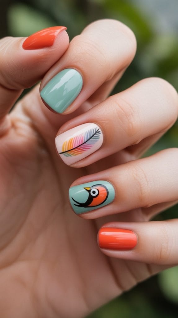 Add a touch of whimsy to your Thanksgiving nails with designs featuring feathered friends. Use vibrant colors to create playful bird motifs, or keep it simple with delicate feather accents. This design is sure to bring a smile to your face!
