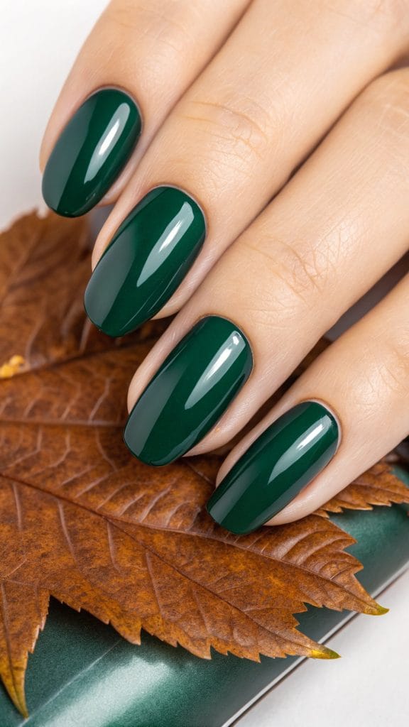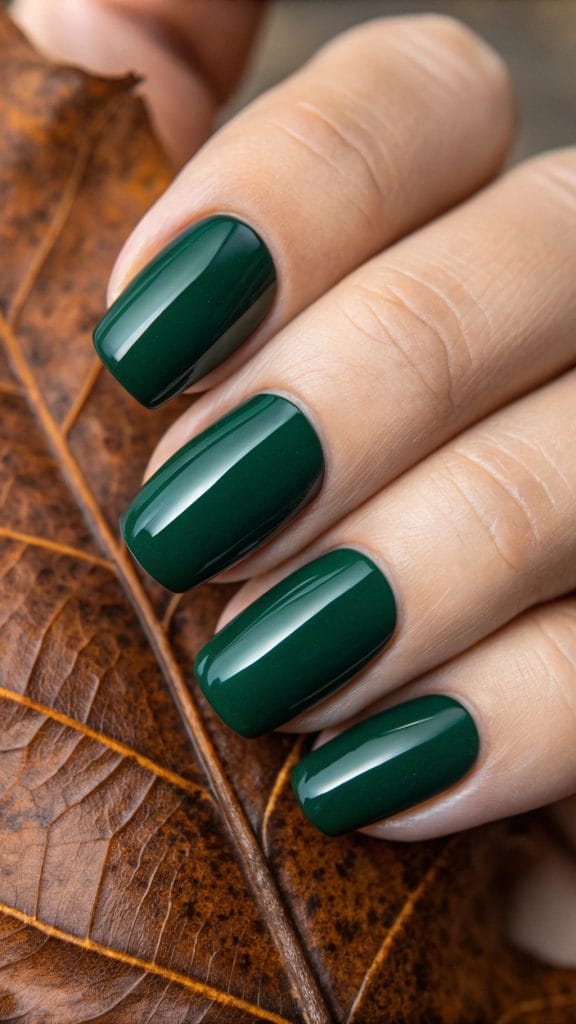 Embrace the earthy tones of fall with forest green nails. This rich, deep shade is perfect for nature lovers who want to bring the outdoors to their fingertips. Forest green is a calming color that pairs well with both casual and formal attire. It’s a great way to celebrate the changing seasons.