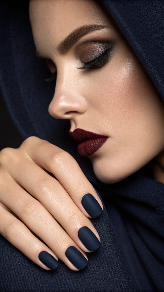 Channel the mystery of autumn evenings with navy blue nails. This deep, dark shade is both dramatic and elegant, perfect for a night out. Navy is a versatile color that complements many fall outfits, making it a staple for this season. Add a matte topcoat for an extra touch of sophistication.