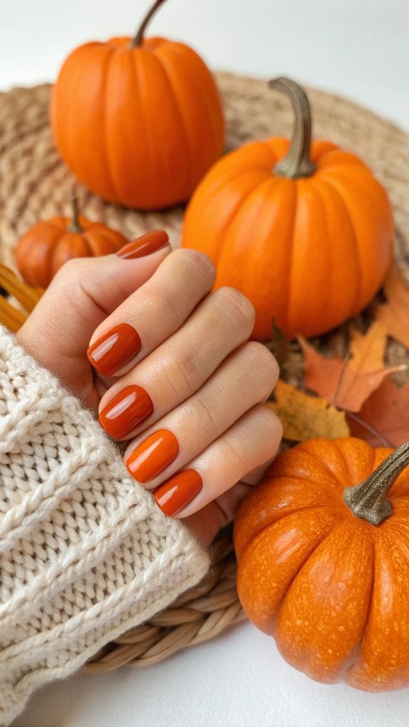 Celebrate the essence of fall with burnt orange nails. This warm, inviting shade is reminiscent of pumpkin patches and autumn sunsets. Burnt orange is a versatile color that adds a cozy and vibrant touch to your look. It’s perfect for those who want to fully embrace the season’s palette.