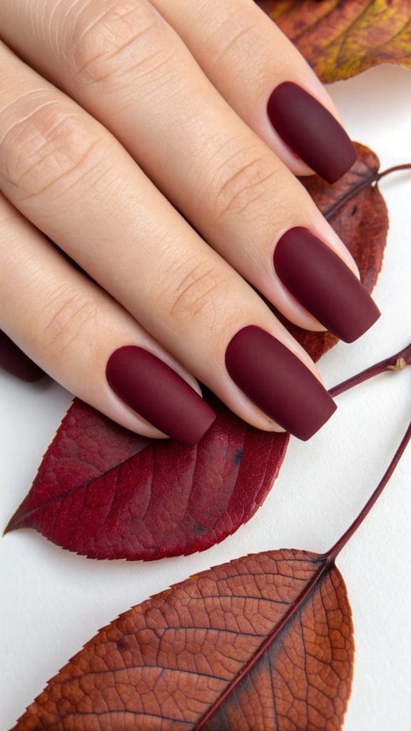Indulge in the richness of deep plum nails this fall. This luxurious, dark shade is perfect for those who love a dramatic look. Deep plum is a versatile color that can be dressed up or down, making it ideal for any occasion. Pair it with silver or gold accents for an added touch of elegance.
