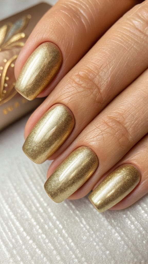 For a touch of vintage glamour, try antique gold nails. This muted, shimmery shade is perfect for those who love a bit of old-world charm. Antique gold adds a sophisticated edge to your fall look, whether you’re attending a formal event or simply want to elevate your everyday style.