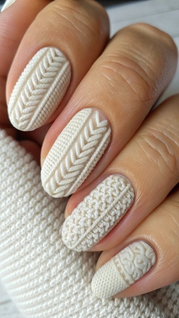 Bring the cozy feeling of sweater weather to your nails with textured designs. Use a matte topcoat and add patterns like cable knit or herringbone for a tactile experience. These textured nails are not only visually interesting but also perfect for embracing the coziness of fall.