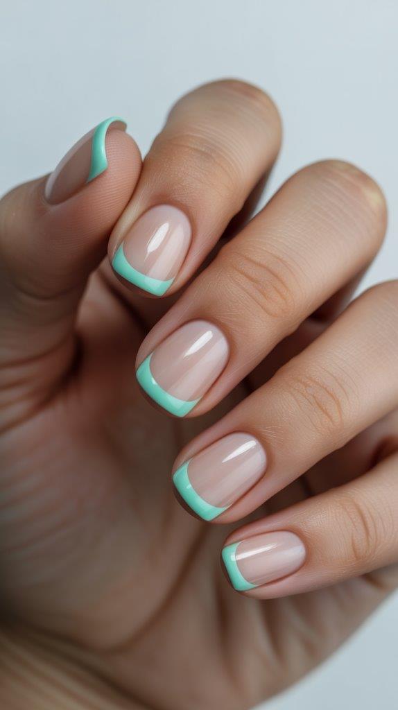 Instead of a full French manicure, paint the very tip of your short nail with a soft pastel color. Think lilac, mint, or baby blue. Keep the line thin and clean. This tiny pop of color is playful and elongates the nail bed just a bit. It’s cute without being cutesy.