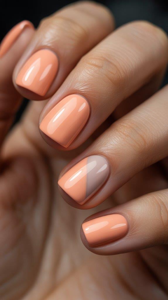 Paint your nail a soft pastel, like peach. Let it dry completely. Then, use a matte top coat over the entire nail. Once that’s dry, add a single, glossy stripe (diagonal or vertical) with a regular top coat and a small brush. The texture contrast is so cool and subtle.