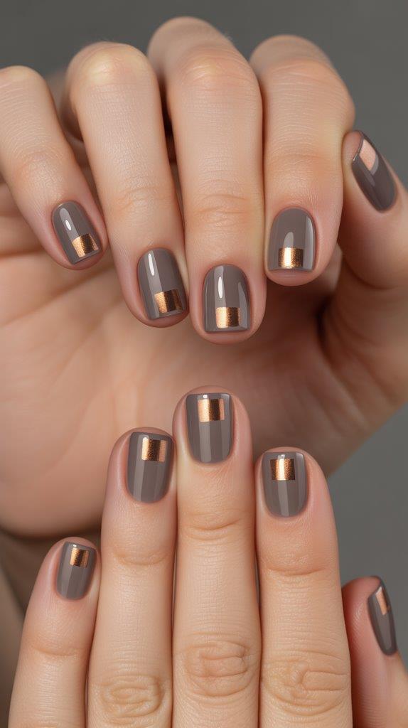 This might be my favorite for short nails. After your base color (try a grey or taupe), use a tiny brush to paint a small, metallic gold square or circle that “floats” in the center of your nail, not touching any edges. It’s like a tiny piece of jewelry. So chic.
