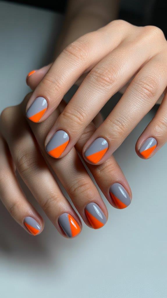 Instead of sharp lines, create a soft, blurred line between two colors on the same nail. You can do a diagonal or horizontal split. The blurred edge is modern and feels less severe on a short canvas. Use a small sponge to dab and blend where the two colors meet.