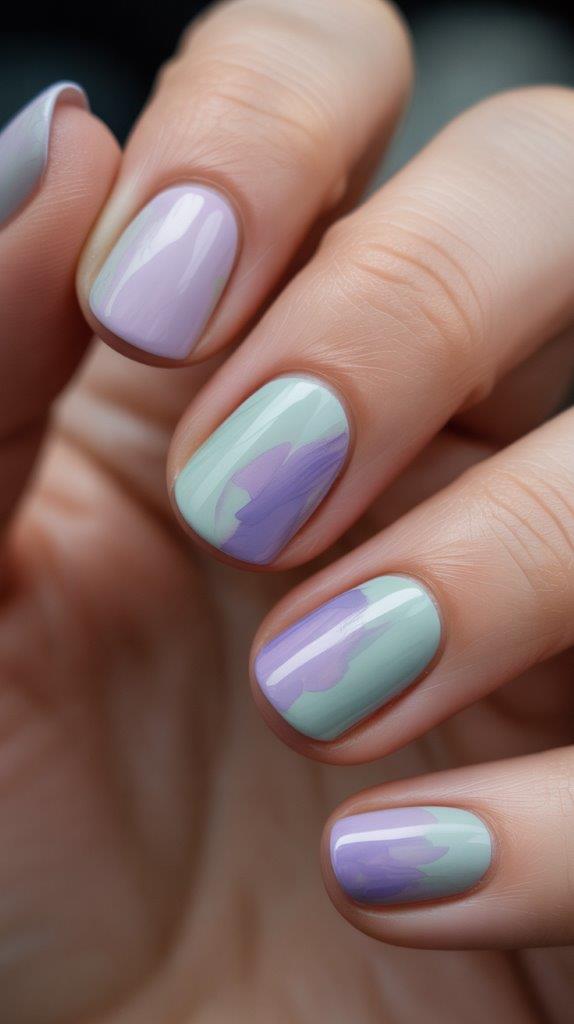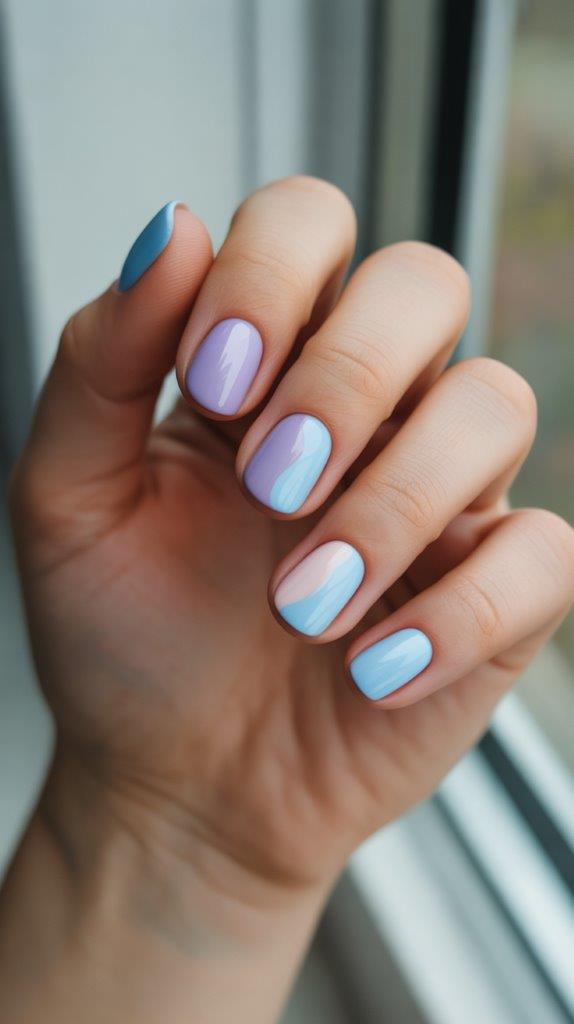 This looks complex but is surprisingly forgiving. Drop a bit of a sheer polish (like a pale blue) onto your nail and immediately dab it with a makeup sponge or your finger to blur the edges. Add another sheer color on top. It creates a soft, artistic, watercolor blur. Imperfection is the goal here.
