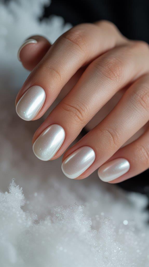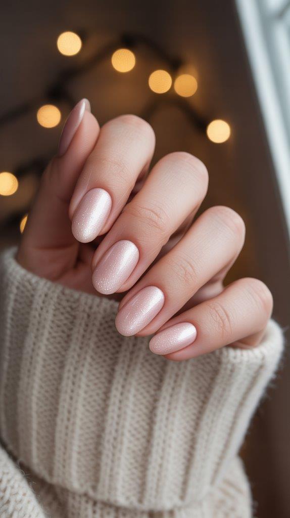 Soft blush pink with a dusting of white shimmer. Cute, feminine, and still winter-appropriate.