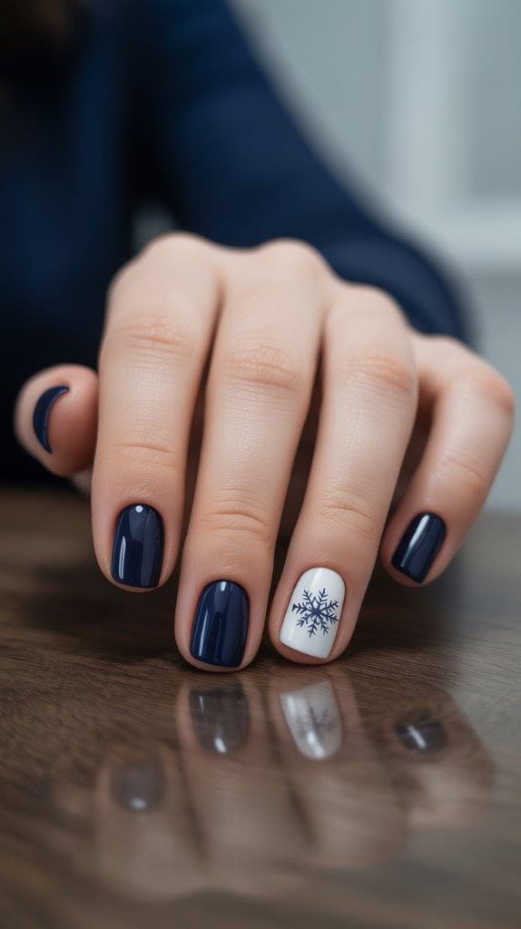 Not ready to go all out? Try a single snowflake as an accent nail. Keep the rest of your nails in a solid shade like navy, burgundy, or even black.