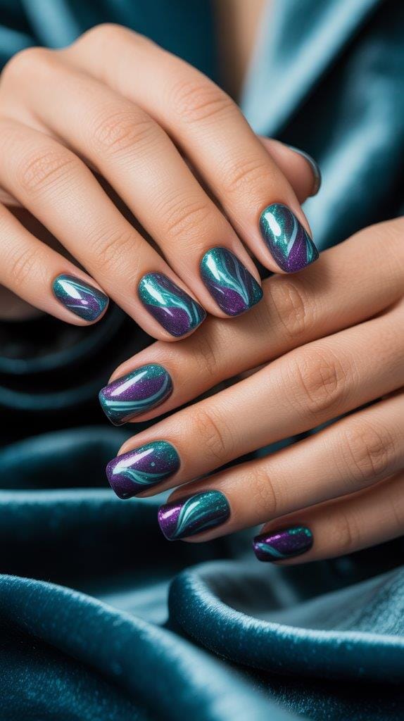 Think teal, blue, and purple glitter. Basically, your nails will look like they came from under the sea.