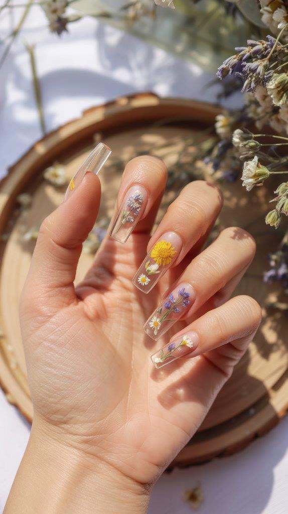 This is the “cottagecore” dream that refuses to die, and I’m here for it. Your tech embeds actual tiny dried flowers into clear acrylic. It creates a fossil-like effect that feels incredibly organic and unique. Ever wondered why people keep coming back to this? It’s because no two flowers are ever exactly the same.