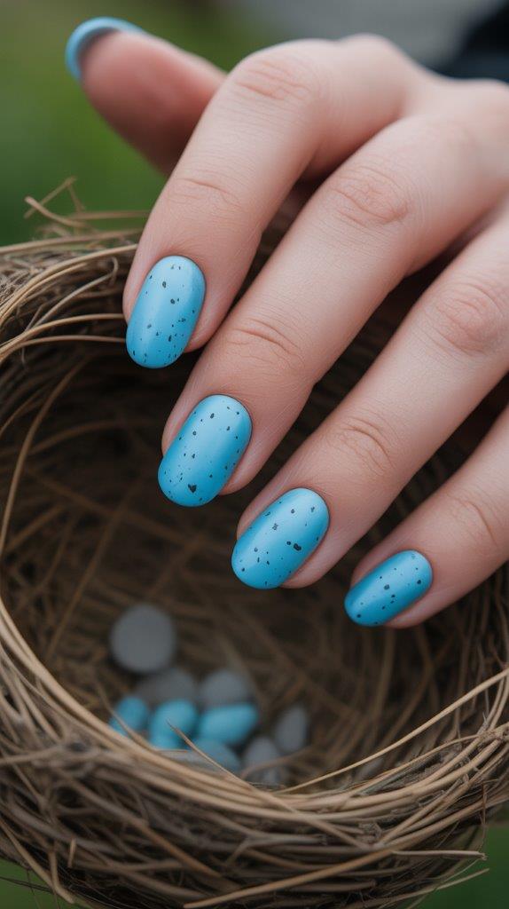 There is something so classic about a speckled Robin’s egg blue. This year, we’re doing it with a completely matte finish to make the black speckles pop. It’s a whimsical design that feels like a literal celebration of spring.