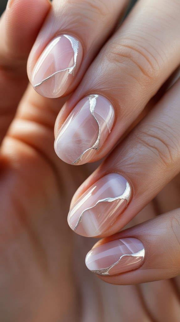 If you hate “busy” nails, this is your winner. Take a nude or “my nails but better” base and add a single vertical silver or rose gold stripe down the center. It elongates the finger and looks incredibly expensive. Who knew a single line could do so much heavy lifting?