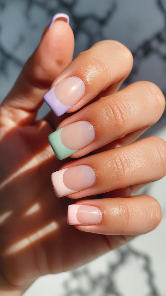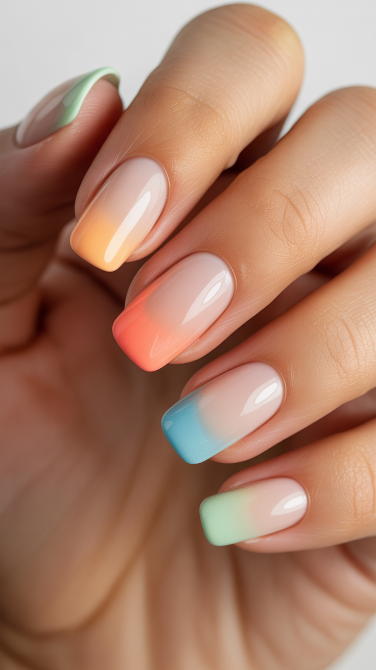 Why choose one color when you can have them all? Paint each nail’s tip a different pastel shade of the rainbow. This design is pure, unadulterated joy. It’s playful, bold, and guaranteed to brighten your mood every time you look down. Pro tip: use a soft, milky pastel palette to keep it cohesive and spring-ready.