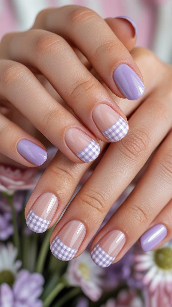Channel picnic blanket vibes with a gingham-patterned French tip. A red and white or blue and white check is classic, but for spring, try a lavender and white combo. It’s cute, it’s nostalgic, and it pairs perfectly with a flowy spring dress. Adorable, right?