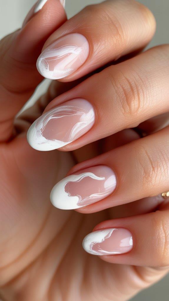This technique creates a stunning, stone-like effect on your tips. Swirls of white and pastel colors blend together for a look that’s both organic and elegant. Each nail becomes a unique little work of art. It’s a fantastic way to add texture and visual interest without any actual 3D elements.