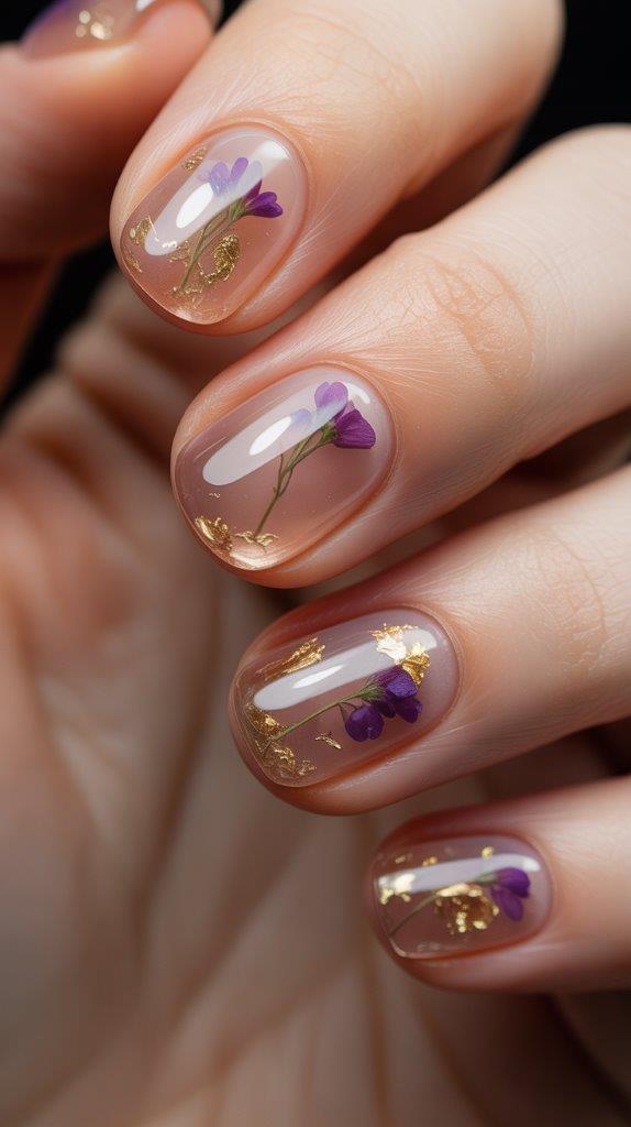 The classic jelly sandwich (sheer polish over glitter) gets a beautiful upgrade. Instead of glitter, sandwich tiny dried flowers or delicate gold leaf flakes between two layers of a sheer apricot or lavender jelly polish. The depth is incredible—it’s like a miniature, wearable snow globe.