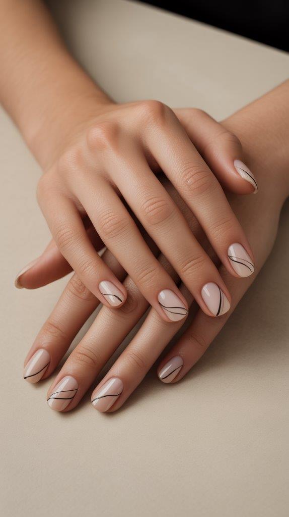 For those who believe less is more, this trend is your holy grail. Think of a single, perfectly placed thin line in black or white over a nude or pastel base. Maybe it curves around your cuticle, or slices diagonally across the nail. It’s understated, artistic, and proves that nail art doesn’t have to be complicated to make a statement.
