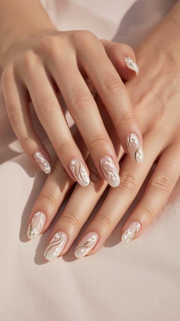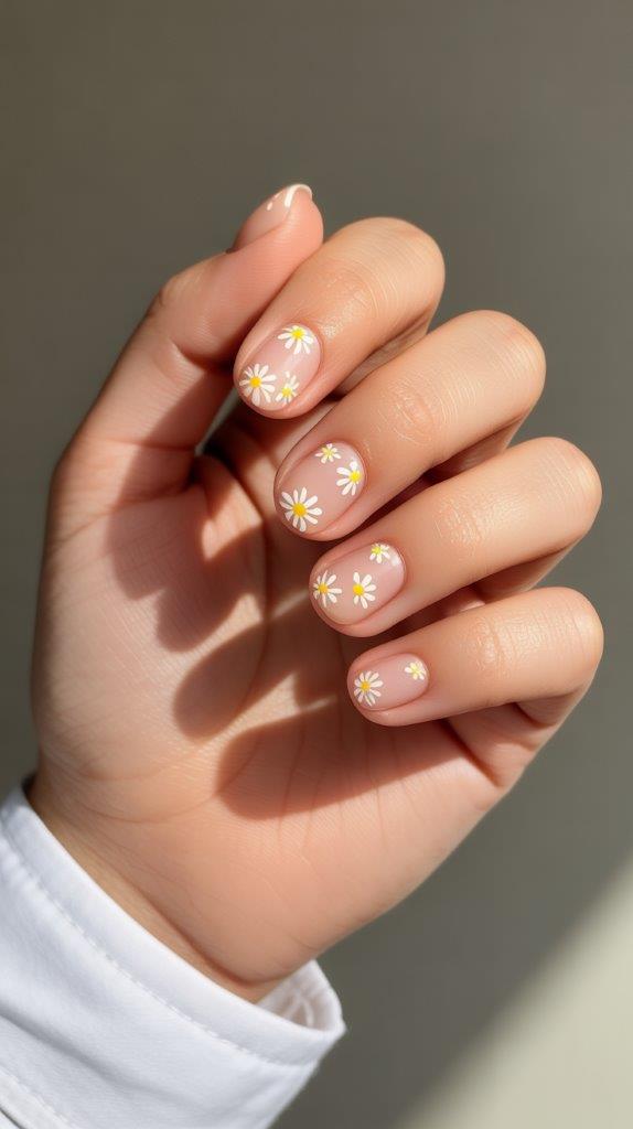 If you’re going to do literal florals, make them daisies. A single, tiny white daisy with a yellow center on a nude or pastel nail is the epitome of sweet, simple spring. It’s cheerful, timeless, and somehow manages to be both youthful and elegant. You can’t be in a bad mood with daisies on your nails.