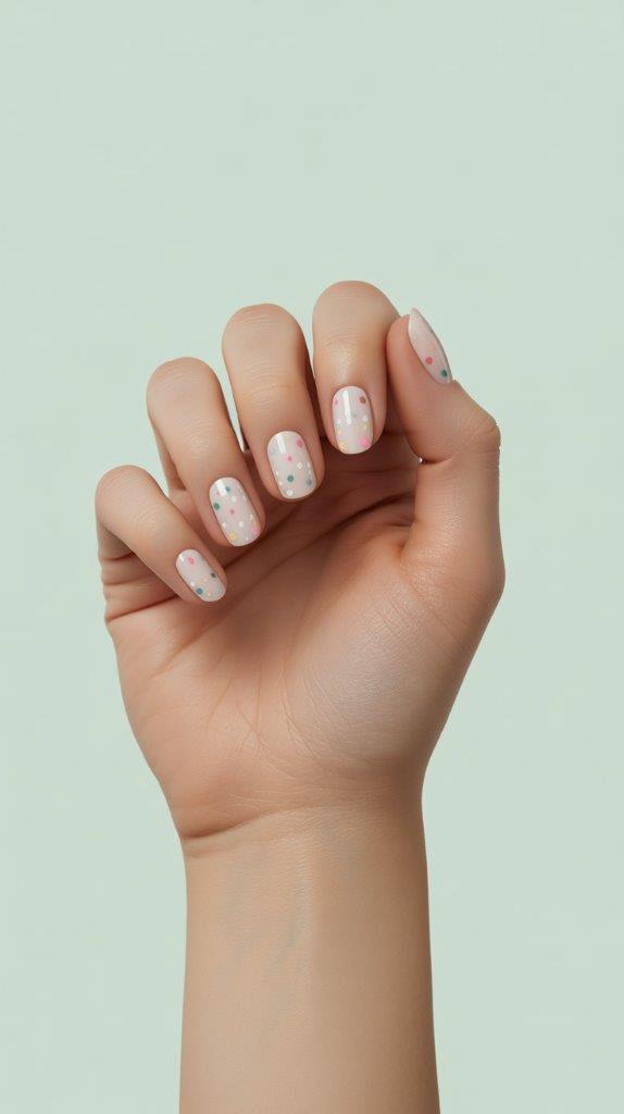 This is the most fun you can have with a dotting tool. A clean, light base (like white or mint) gets a playful sprinkle of multi-colored micro-dots. It looks like someone threw a tiny, elegant confetti party on your fingertips. It’s whimsical, easy to DIY, and captures that celebratory spring feeling perfectly.