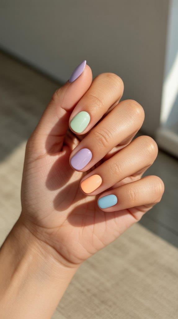 Commitment issues? No problem. The mismatched manicure is here for you. Paint each nail a different soft pastel shade from the same family. A gradient of lilac to periwinkle, or a skittle mani of all the Easter egg colors. It’s cohesive yet fun, and it lets you wear all your favorite spring polishes at once.