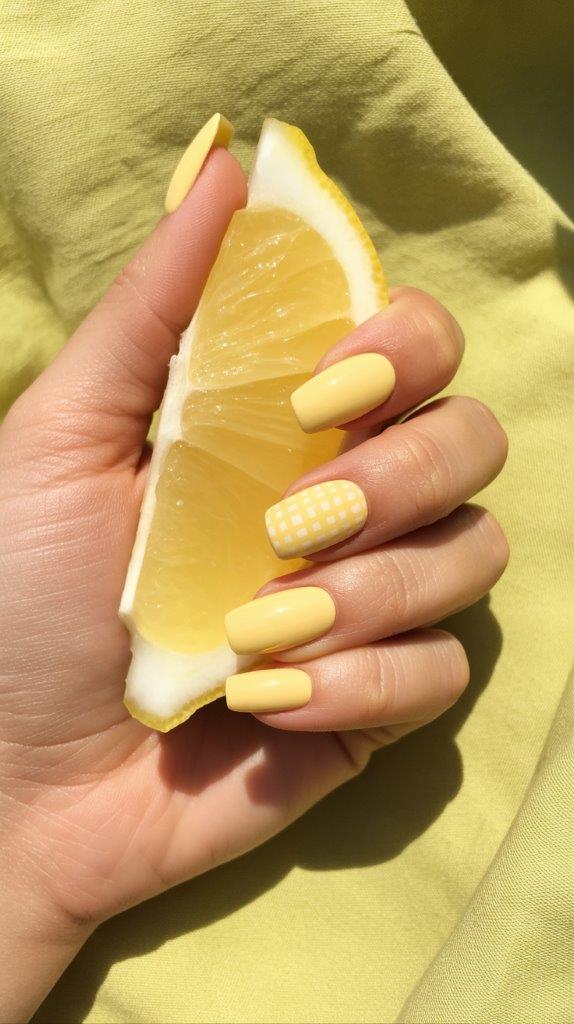 Channel sunny-side-up eggs and daffodils. A soft, buttery yellow is surprisingly wearable. For a playful twist, add a single accent nail with a tiny, precise white and yellow checkerboard pattern.