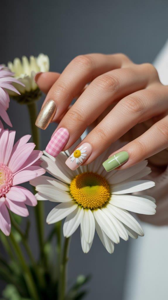 Ready to go all-in? This is a curated mix. Imagine a different spring design on each nail: one gingham, one solid pastel, one with a single flower, one with a gold foil accent, all tied together with a cohesive color palette. It’s the ultimate expression of not being able to choose just one—and why should you?
