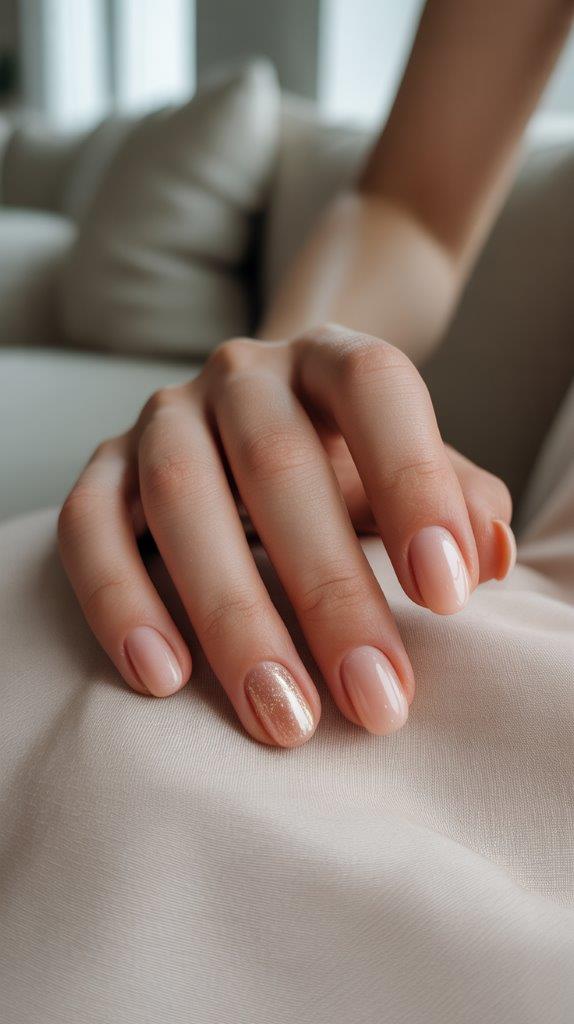 Crystal healing, but make it fashion. A milky rose quartz pink SNS base gets a sprinkle of fine, holographic glitter just at the nail bed or the tip. It’s not a full-on glitter bomb; it’s a delicate sparkle, like light hitting a crystal. This look combines the calming, feminine energy of rose quartz with a touch of magic. It’s romantic, healing, and guaranteed to make you feel like you’ve got your life together (even if you don’t).