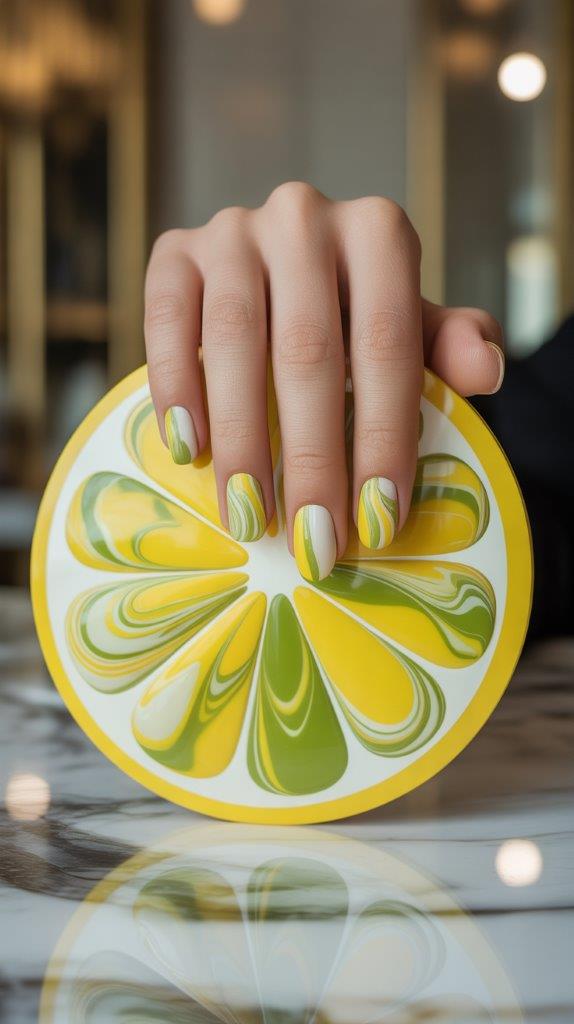 Feeling a little zesty? Channel that energy into your nails. This design swirls together bold, saturated yellows and greens to look like a chic, abstract slice of lemon or lime. The marbling technique with SNS powders creates incredible depth and movement. It’s art for your hands. This look makes a serious statement, so keep the rest of your accessories simple and let your nails do all the talking. Trust me, people will ask you where you got them.