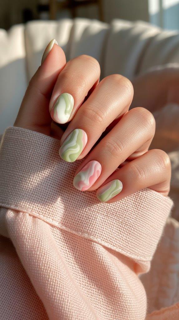 This design is as sweet as it sounds. Think of the softest vanilla buttercream swirled with a hint of strawberry or pistachio. Using SNS powders in cream-based pastels, your nail artist can create a soft, cloud-like marbled effect. It’s whimsical, delicious-looking, and feels inherently joyful. The matte or glossy finish both work beautifully here. It’s a fantastic choice if you find solid pastels a bit flat; this adds dimension and pure cupcake fantasy.