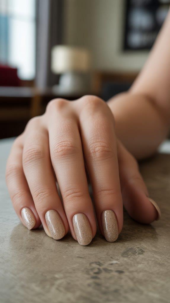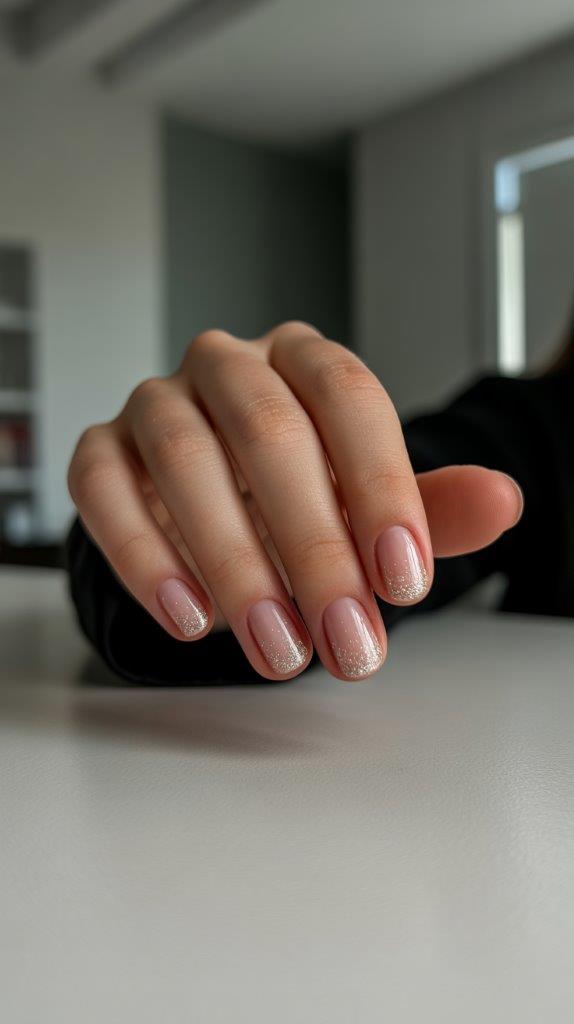 Start with a nude base and fade into a glittery tip. You can use chunky glitter for a fun texture or fine glitter for a sparkle that catches the light. This design is all about adding drama without overpowering your outfit. It’s like a little party at your fingertips.